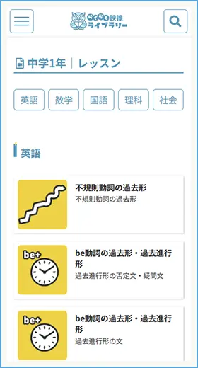 TOPページの本棚からは選んだ学年・科目のレッスン一覧が見られるよ。